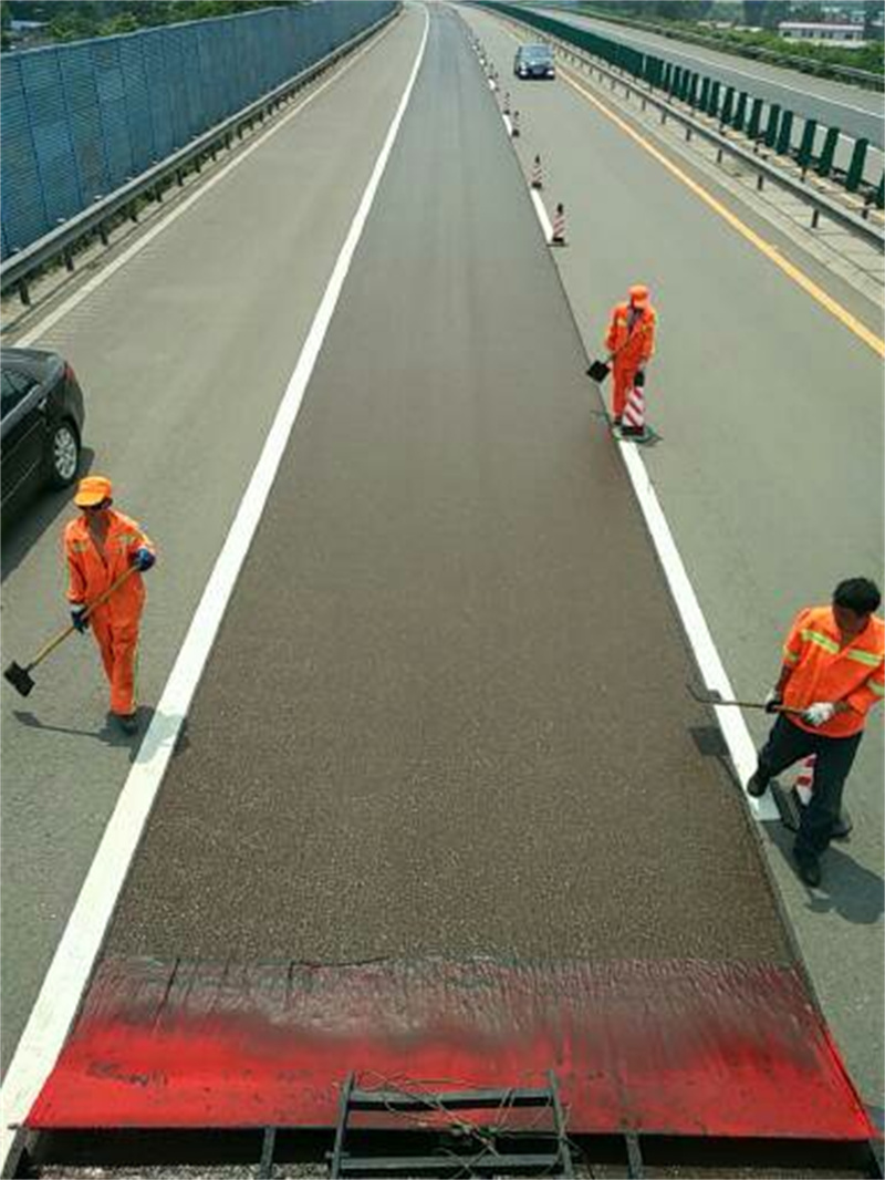 應(yīng)用范圍:     砂封層主要應(yīng)用于高速公路,一、二級(jí)公路瀝青路面的預(yù)防性養(yǎng)護(hù)。可以進(jìn)行美化路緣、路肩施工。經(jīng)過(guò)砂封層施工后可以改變新舊路面的外觀及顏色。施工說(shuō)明:砂封層是一種層鋪的施工工藝。采用同步碎石封層設(shè)備將聚合物改性粘結(jié)材料和骨料金剛砂同時(shí)撒布施工的一種施工工藝。粘結(jié)材料應(yīng)選擇高濃高粘且具有一定滲透型和還原性。骨料需選擇耐磨的金剛砂。技術(shù)特點(diǎn):(1)常溫施工,無(wú)需加熱,節(jié)能環(huán)保。(2)用來(lái)解決瀝青路表面瀝青老化出現(xiàn)的貧油狀況。(3)解決原路面出現(xiàn)的麻面、松散掉粒、輕微裂縫等現(xiàn)象。(4)新路面可以起到防水的作用。(5)增加路面摩擦系數(shù)和耐磨性能。施工工藝:封閉交通→清理路面→病害處理→砂封層施工→養(yǎng)生→開(kāi)放交通